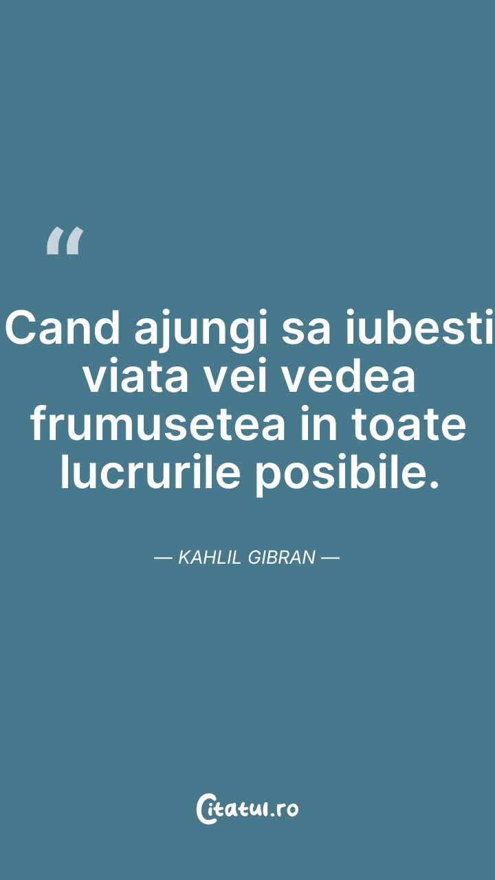 Cand ajungi sa iubesti viata vei vedea frumus ... Citește tot citatul >