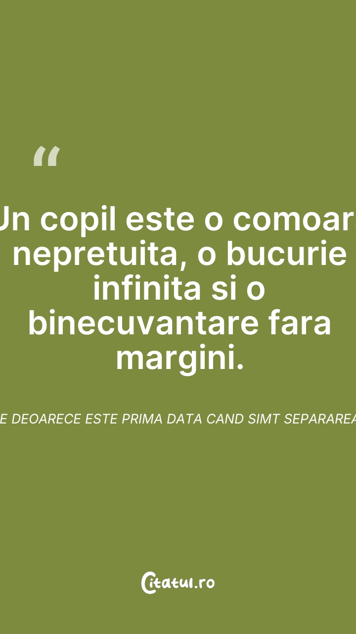 Un copil este o comoara nepretuita, o bucurie ... Citește tot citatul >