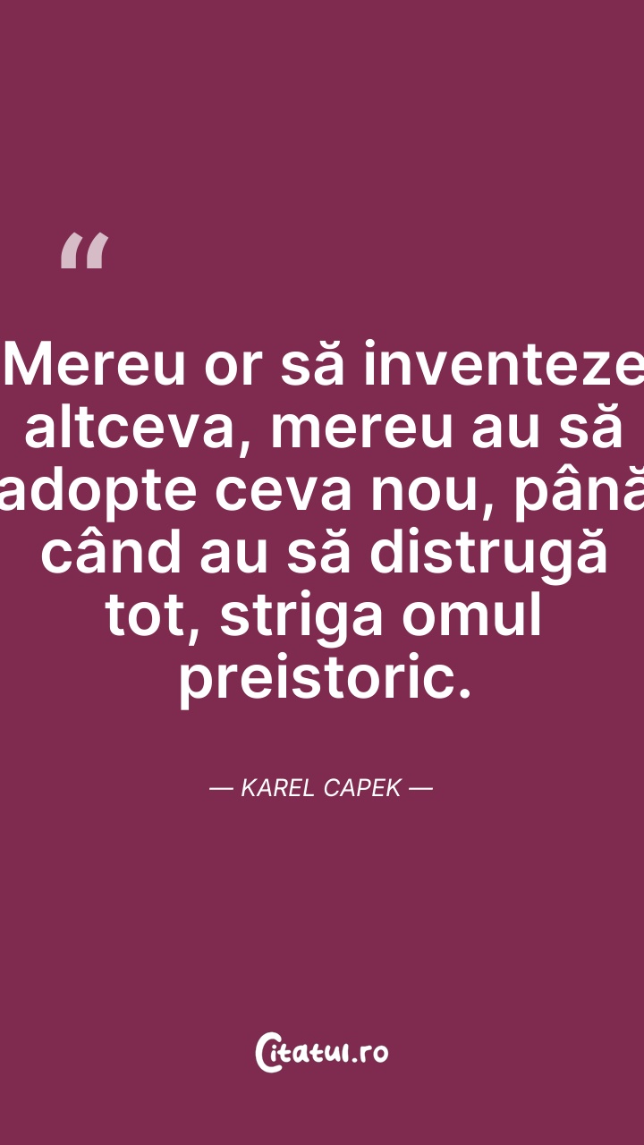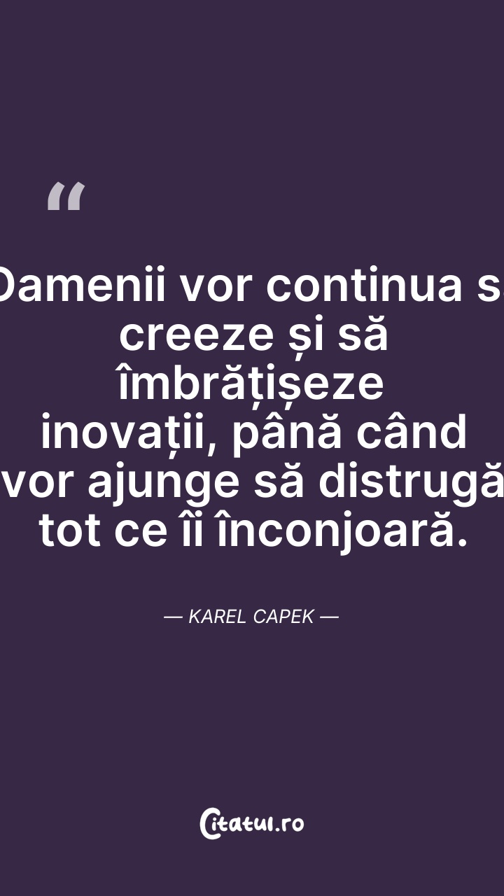 Karel Čapek a fost un desenator, jurnalist, prozator și un dramaturg ceh, unul dintre cele mai populare nume ale literaturii cehe. Čapek este cel care a pus în circulație cuvântul „robot” în sensul modern al cuvântului, în lucrarea sa R.U.R..