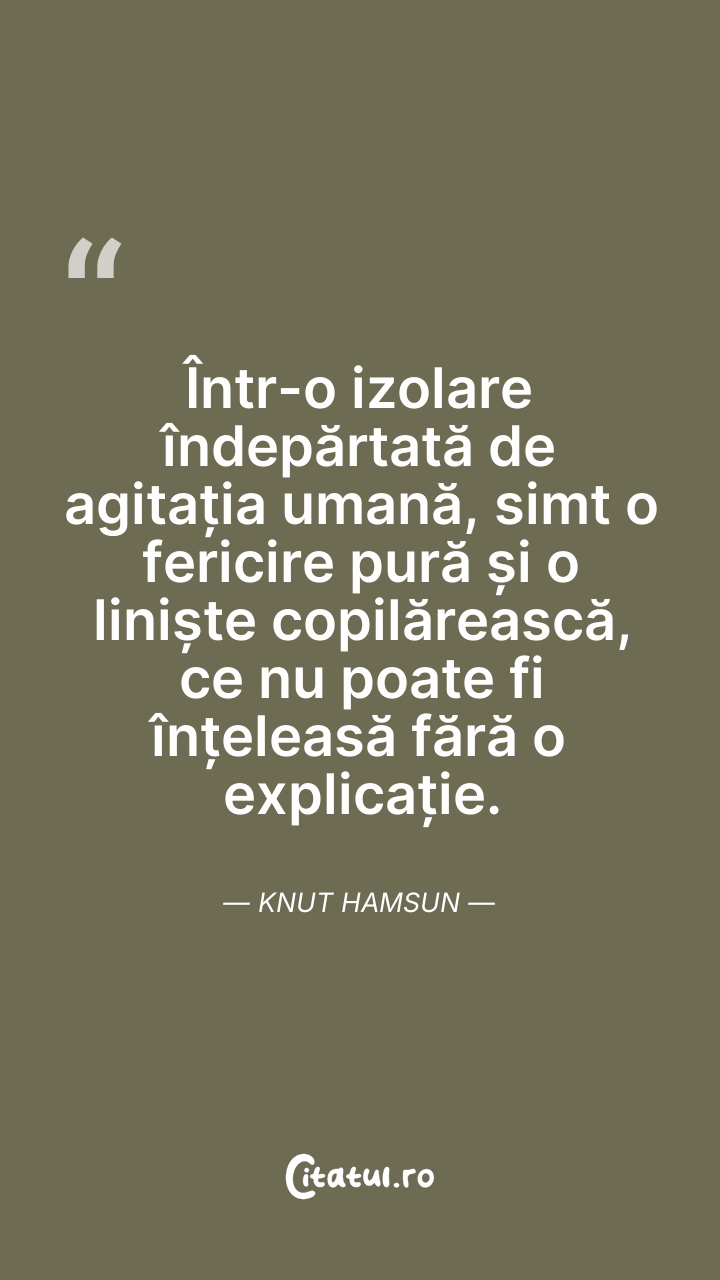 Într-o izolare îndepărtată de agitația umană, ... Citește tot citatul >