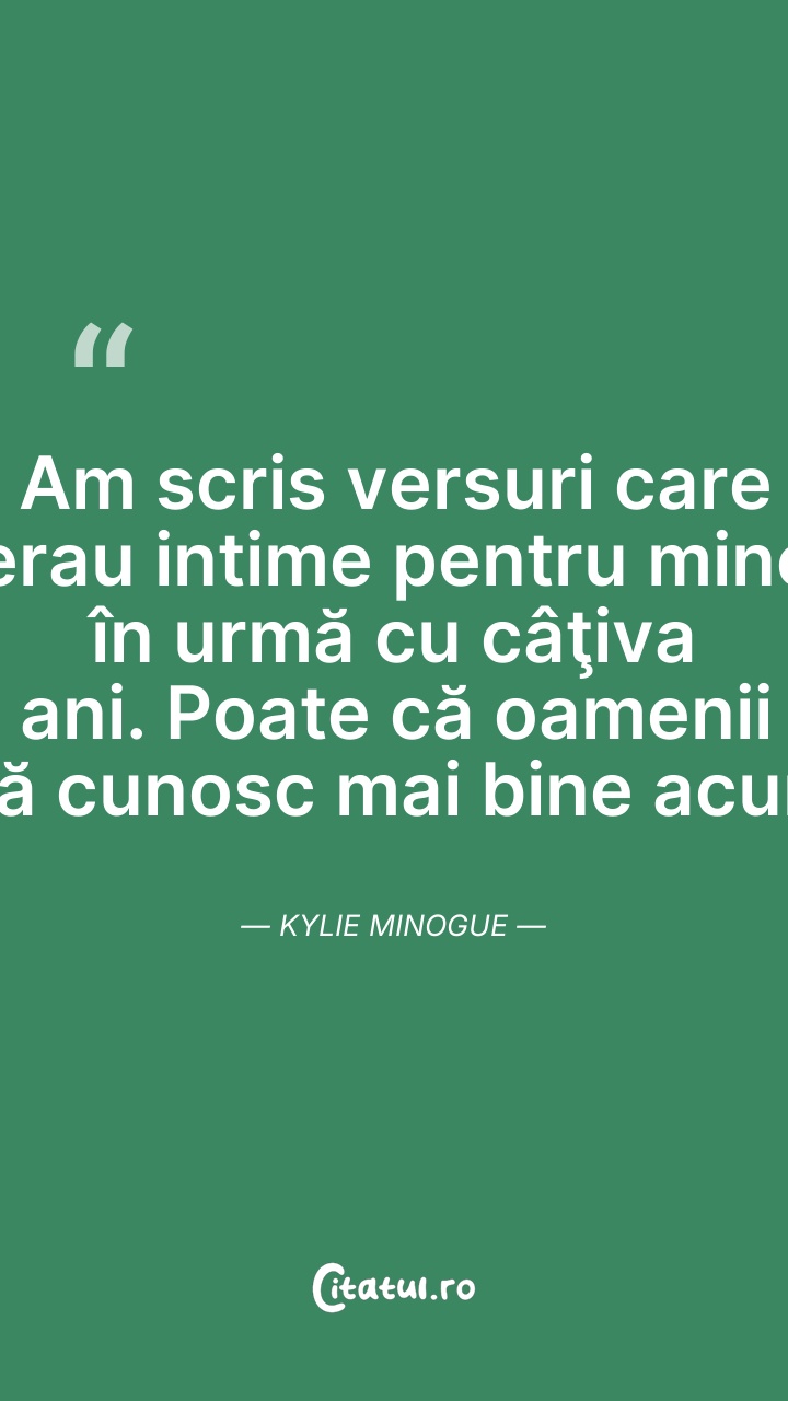 Am scris versuri care erau intime pentru mine ... Citește tot citatul >