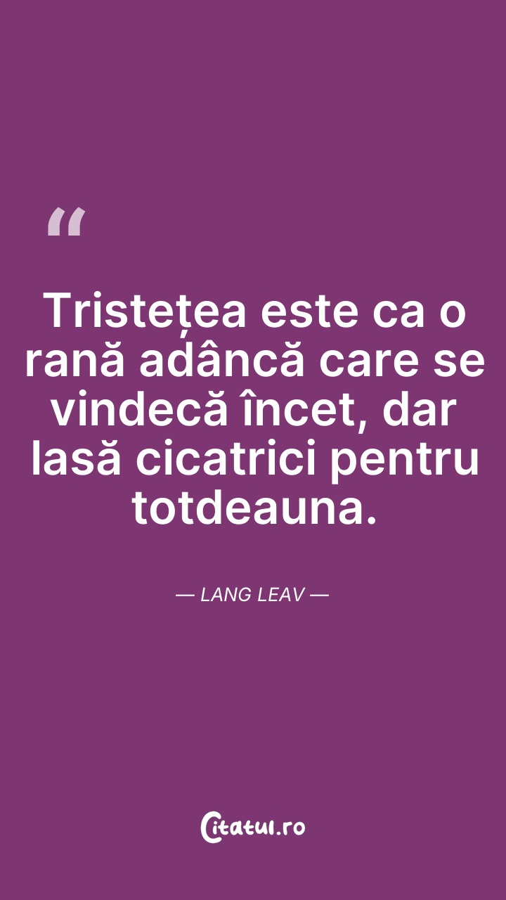 Tristețea este ca o rană adâncă care se vinde ... Citește tot citatul >