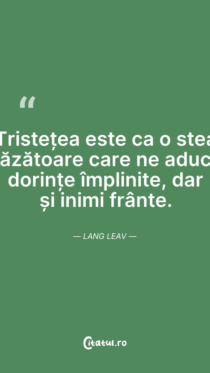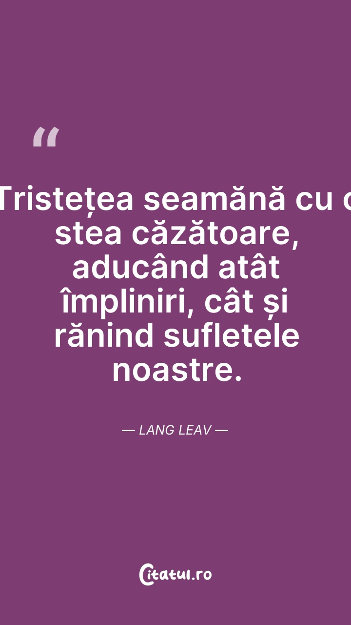 Tristețea seamănă cu o stea căzătoare, aducân ... Citește tot citatul >