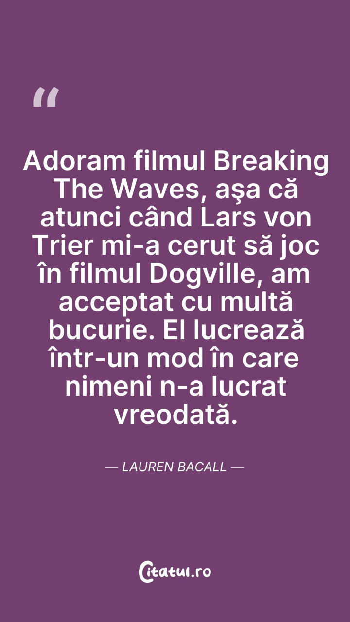 Adoram filmul Breaking The Waves, aşa că atun ... Citește tot citatul >