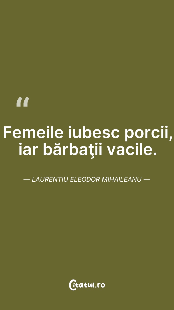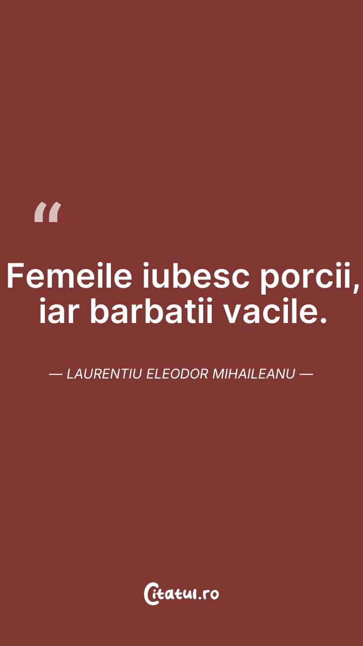 Femeile iubesc porcii, iar bărbaţii vacile. L ... Citește tot citatul >