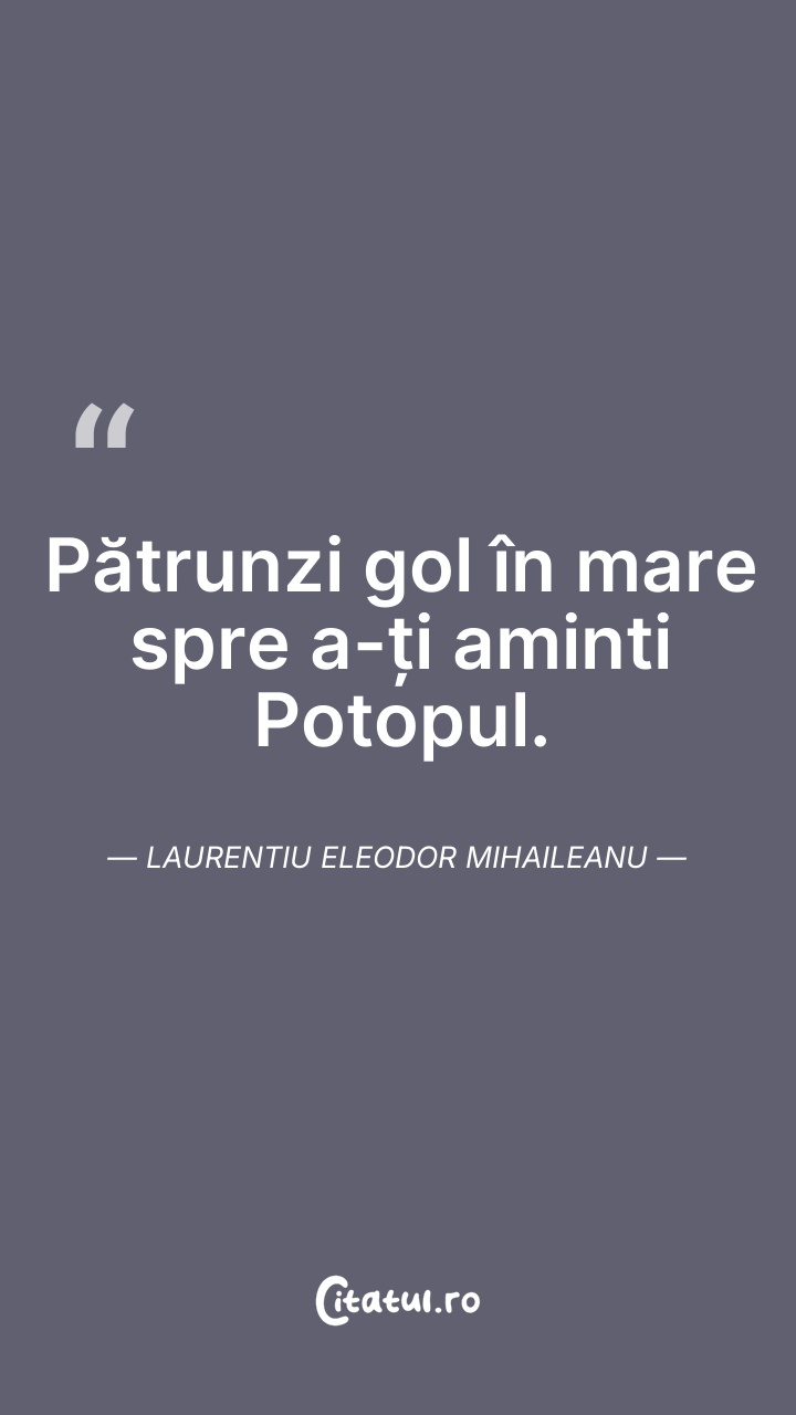 Pătrunzi gol în mare spre a-ți aminti Potopul ... Citește tot citatul >