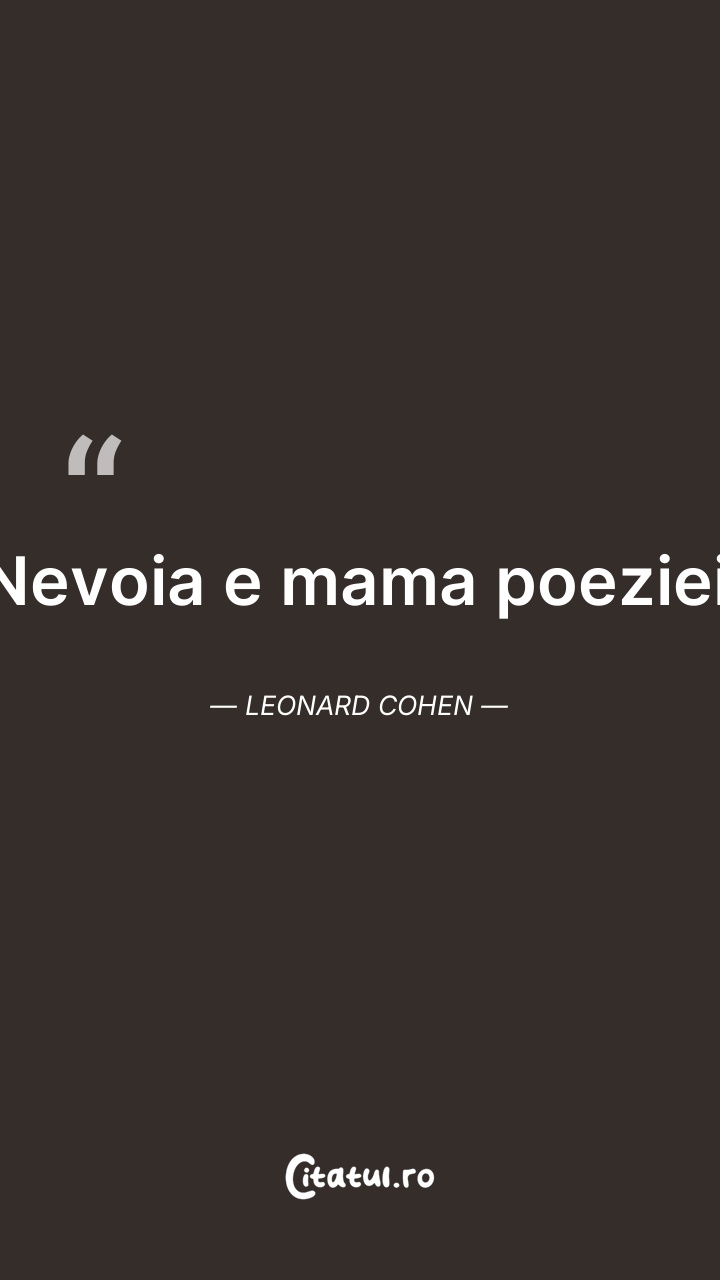 Nevoia e mama poeziei. Leonard Cohen
