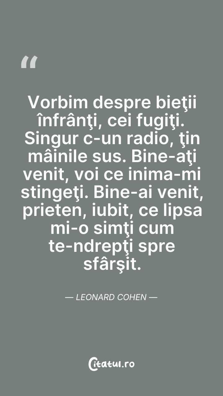 Discutăm despre cei răniți și pierduți, singu ... Citește tot citatul >