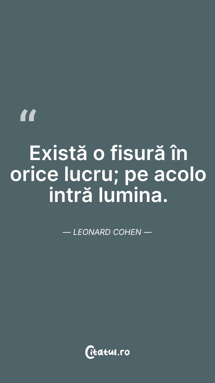 Există o fisură în orice lucru; pe acolo intr ... Citește tot citatul >