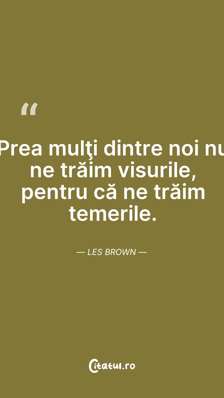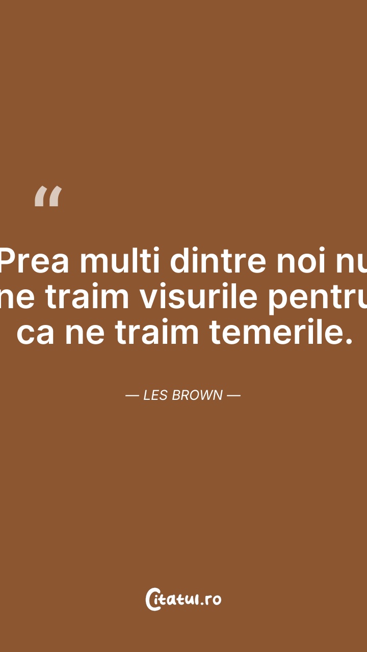 Prea multi dintre noi nu ne traim visurile pe ... Citește tot citatul >