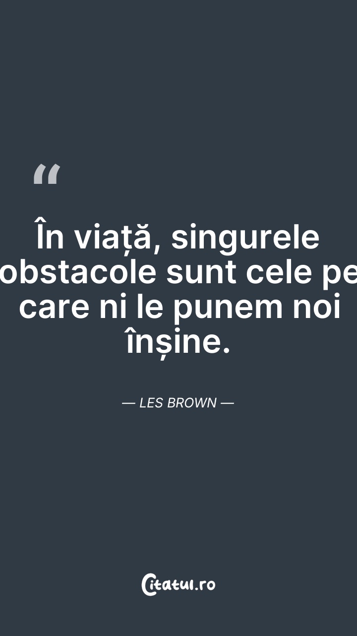 În viață, singurele obstacole sunt cele pe ca ... Citește tot citatul >
