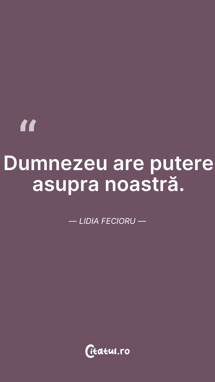 Dumnezeu are putere asupra noastră. Lidia Fec ... Citește tot citatul >