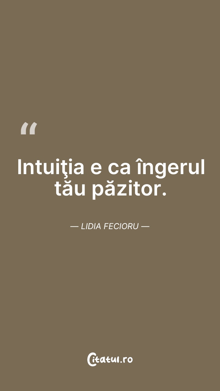 Intuiţia e ca îngerul tău păzitor. Lidia Feci ... Citește tot citatul >