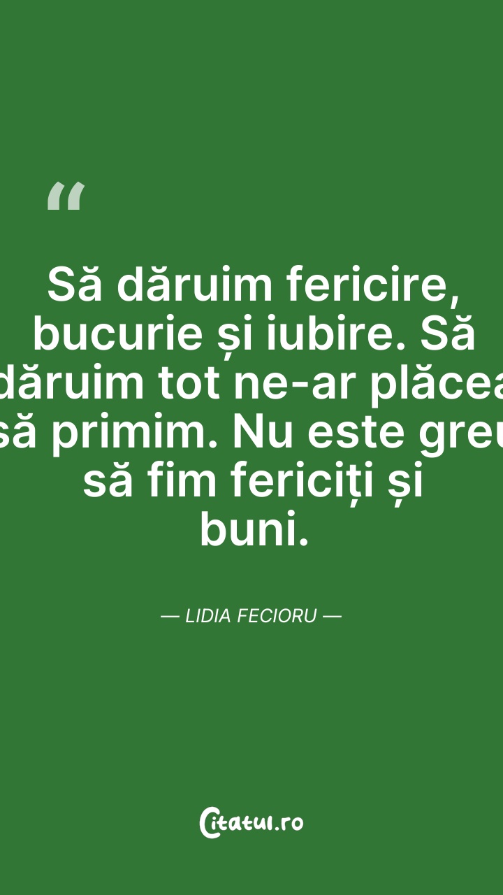 Să dăruim fericire, bucurie și iubire. Să dăr ... Citește tot citatul >