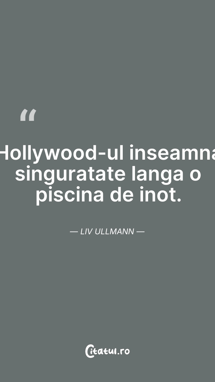 Hollywood-ul inseamna singuratate langa o pis ... Citește tot citatul >