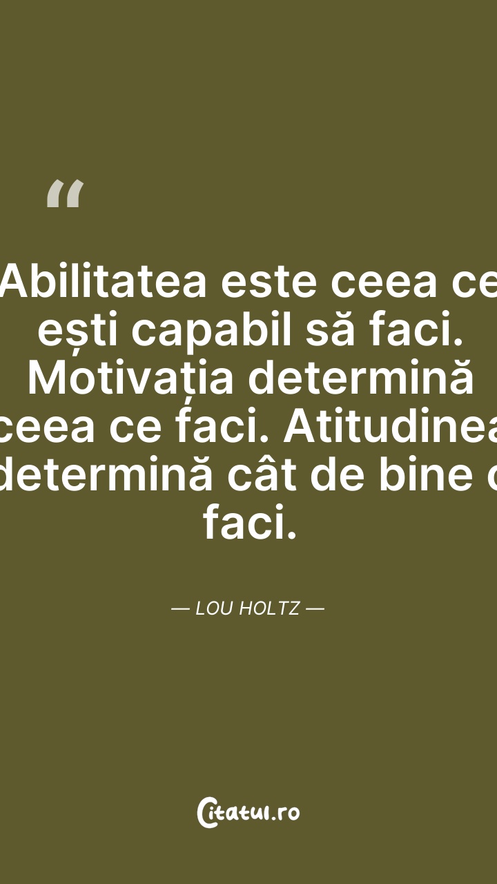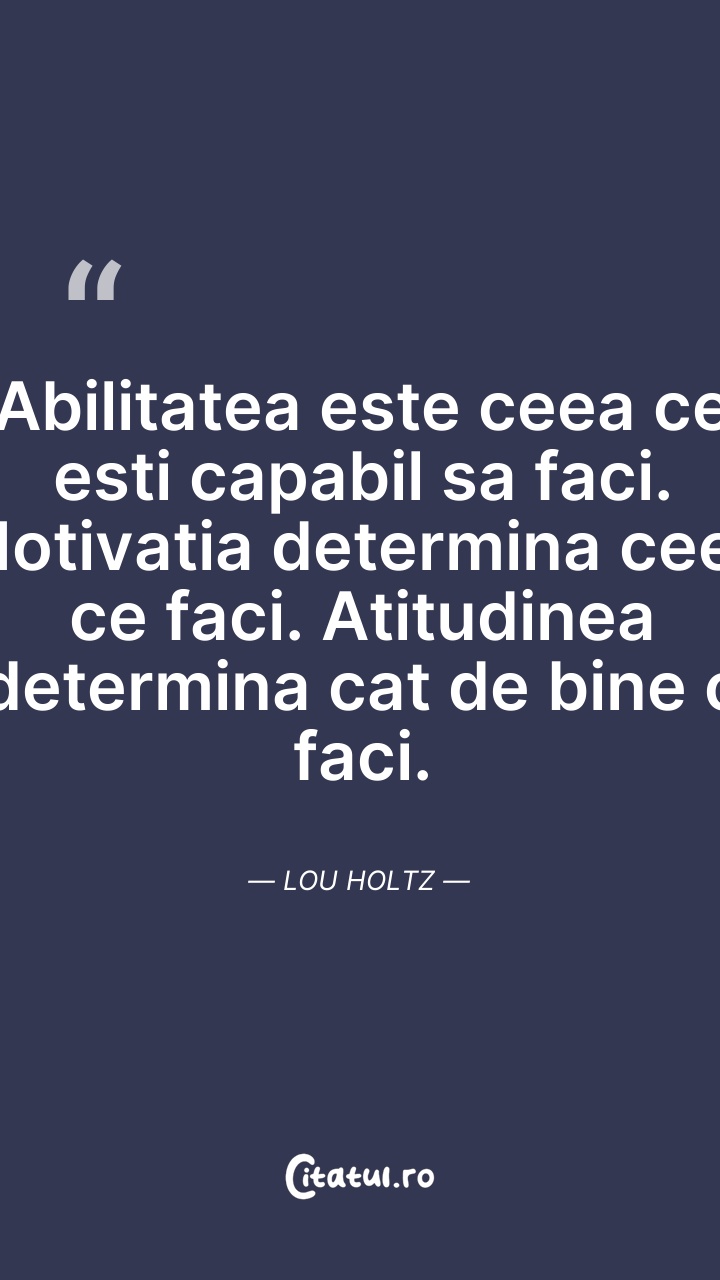 Abilitatea este ceea ce ești capabil să faci. ... Citește tot citatul >