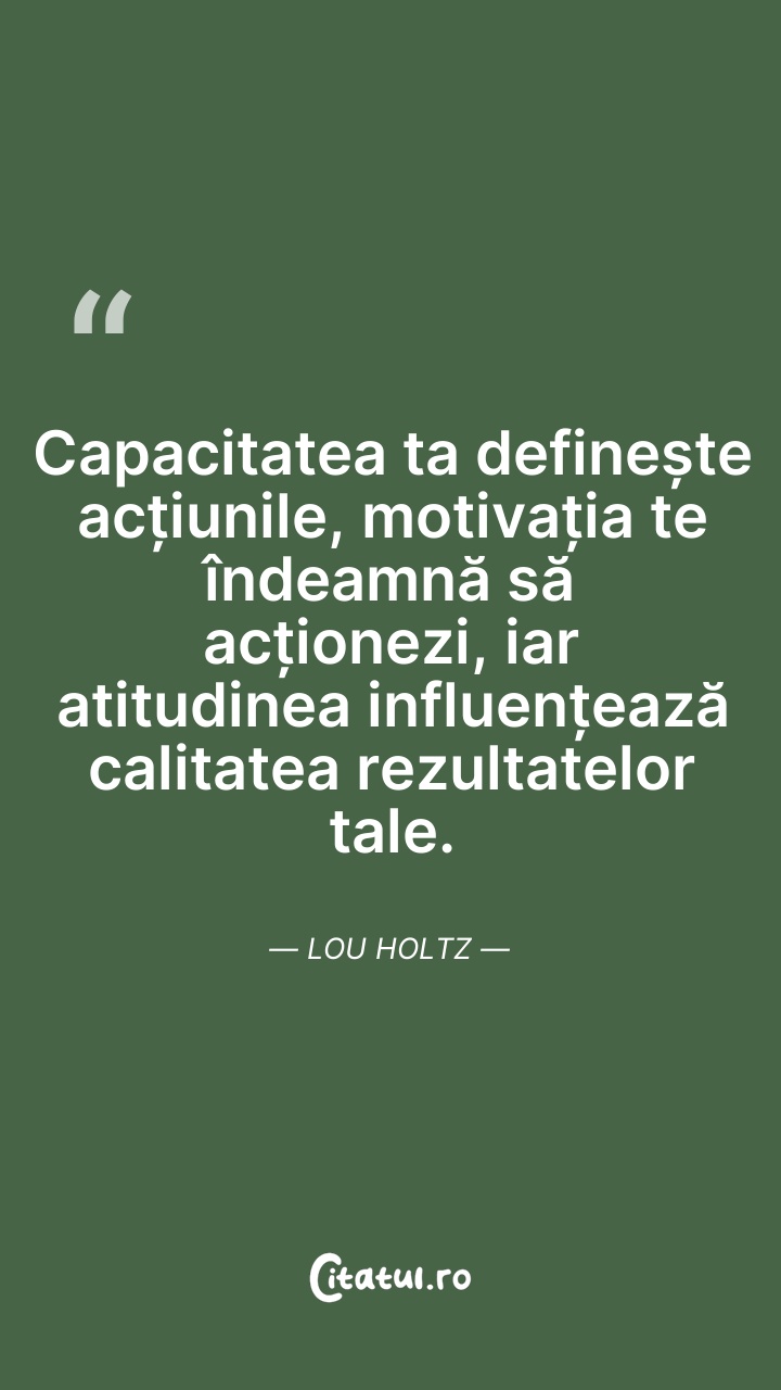 Capacitatea ta definește acțiunile, motivația ... Citește tot citatul >