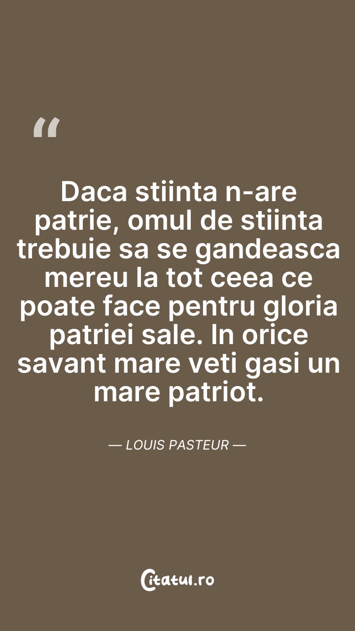 Daca stiinta n-are patrie, omul de stiinta tr ... Citește tot citatul >