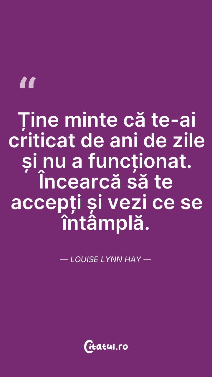 Ține minte că te-ai criticat de ani de zile ș ... Citește tot citatul >