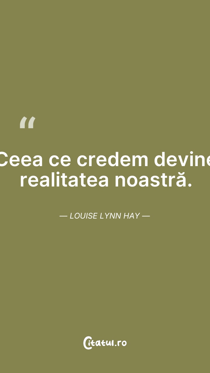 Ceea ce credem devine realitatea noastră. Lou ... Citește tot citatul >