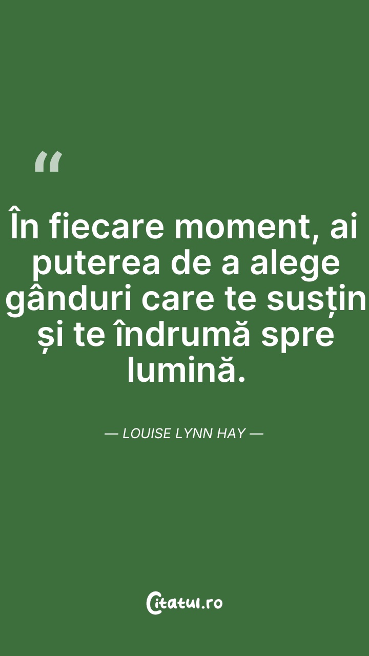 În fiecare moment, ai puterea de a alege gând ... Citește tot citatul >