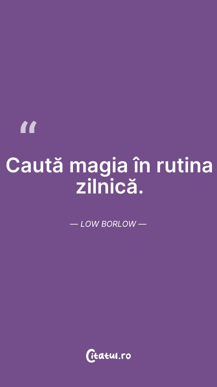 Caută magia în rutina zilnică. Low Borlow