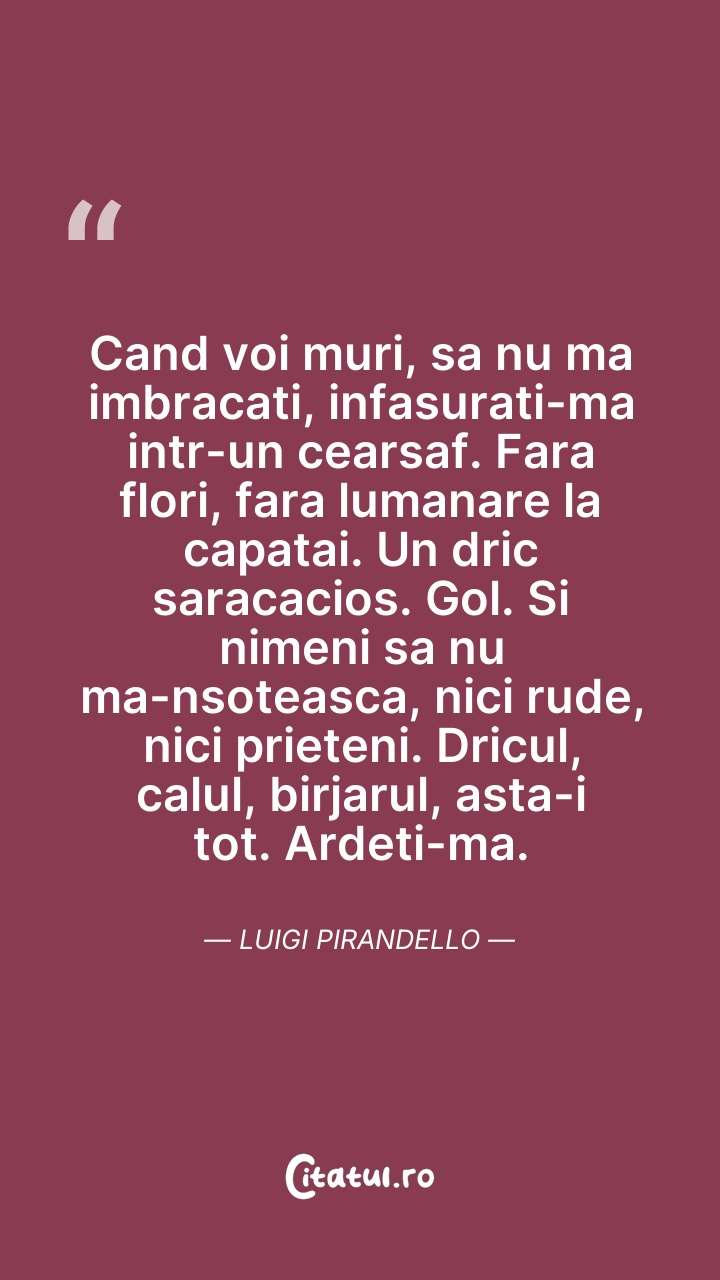 Cand voi muri, sa nu ma imbracati, infasurati ... Citește tot citatul >