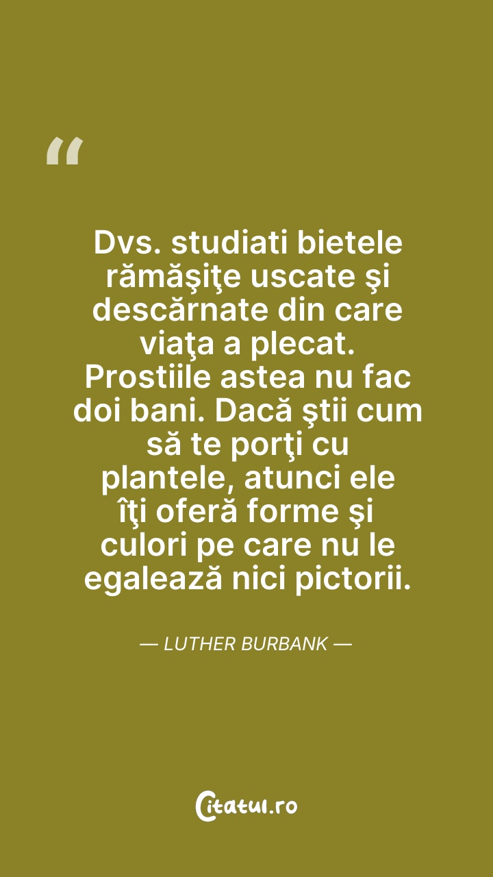 Luther Burbank a fost un botanist, horticultor și pionier agronom american. Acesta a dezvoltat mai mult de 800 de varietăți de plante în cei 55 de ani de carieră, printre care sunt notabile cactusul fără spini și câteva specii hibride de prune.