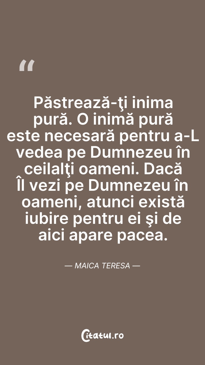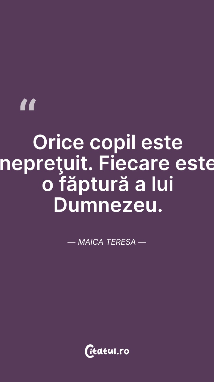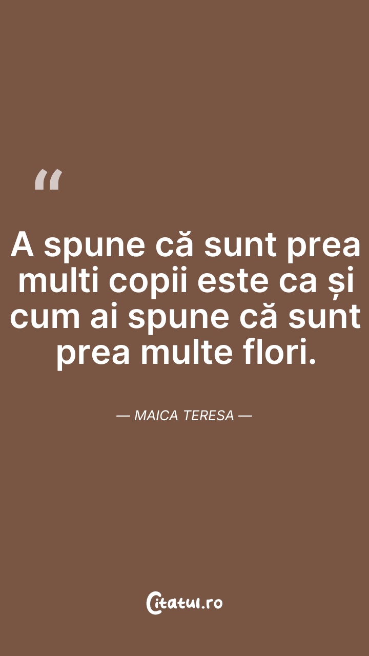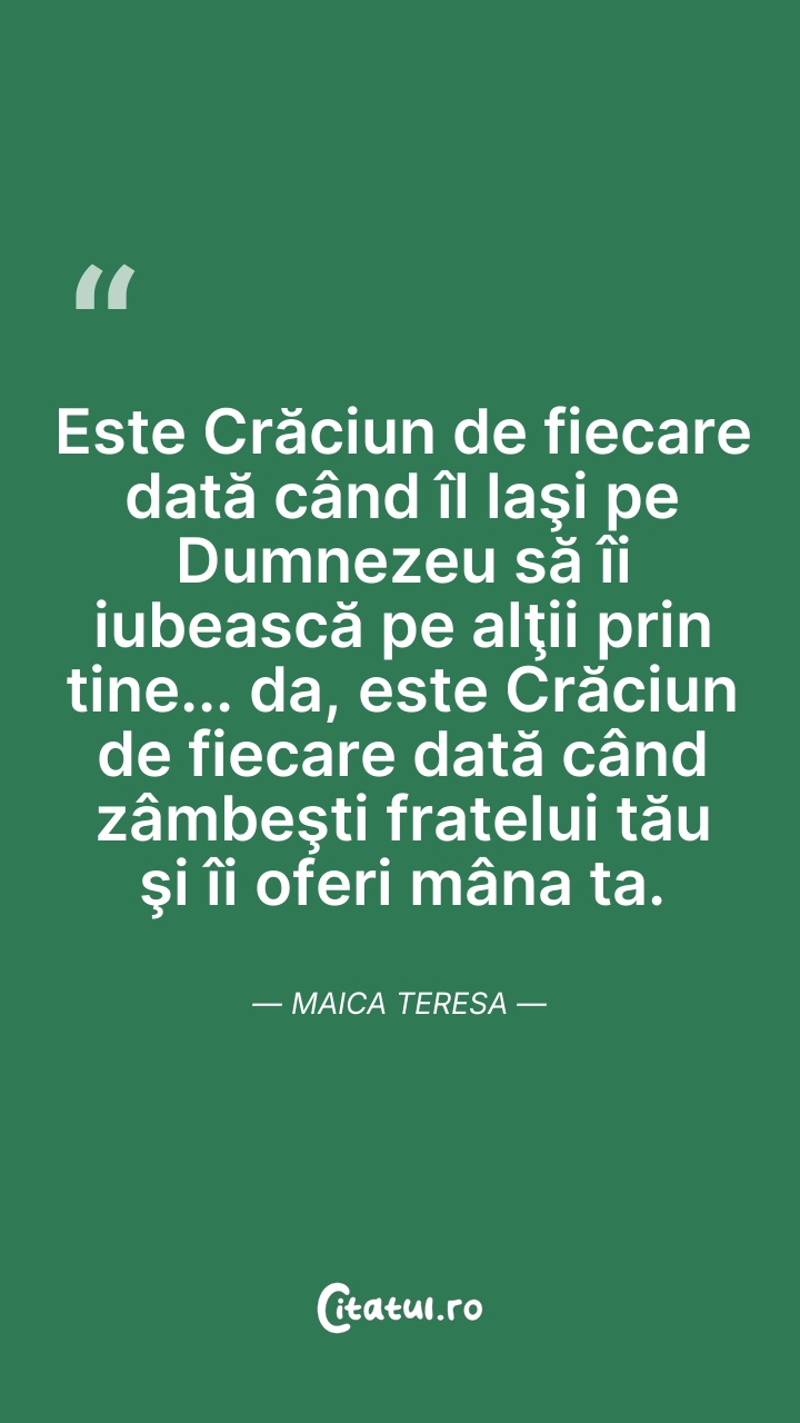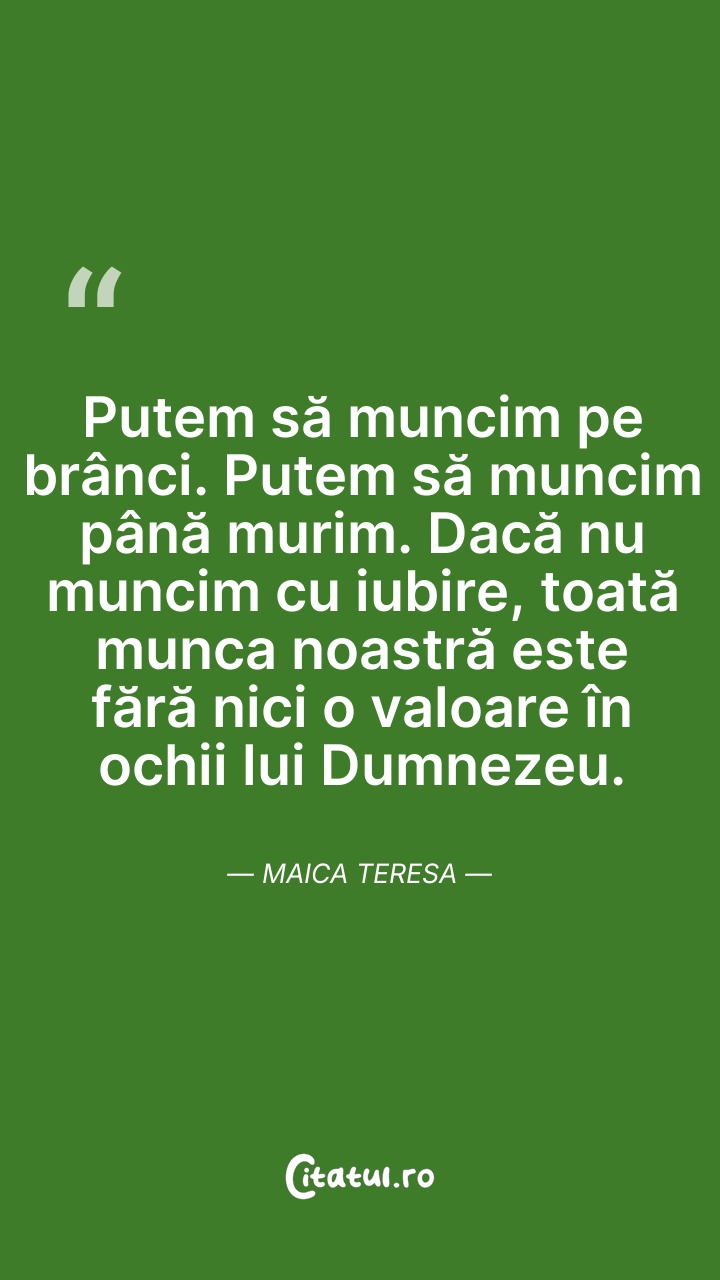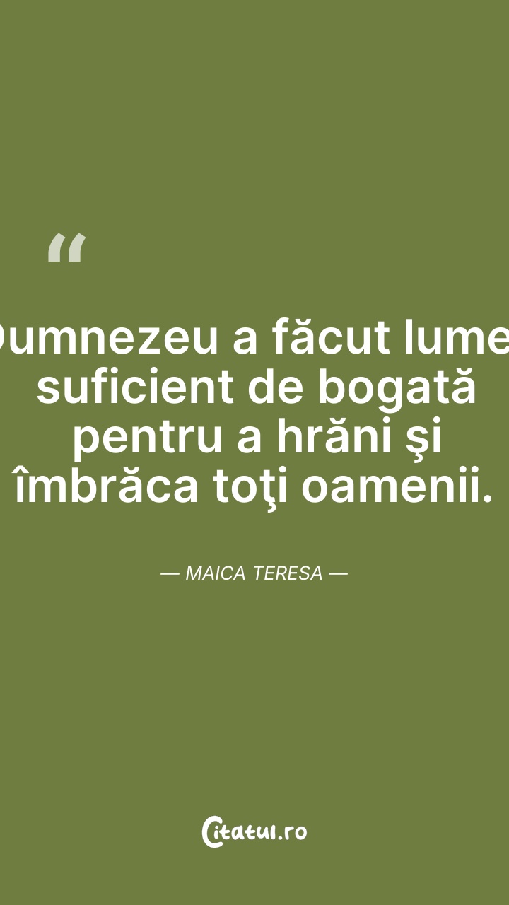 Maica Tereza, a fost o călugăriță catolică de origine albaneză care a fondat în anul 1950 ordinul Misionarele Carității(en)[traduceți] în Kolkata (Calcutta), India. Timp de peste 45 de ani a îngrijit săracii, bolnavii, orfanii și muribunzii, conducând și extinderea Misionarelor Carității, mai întâi în toată India, apoi și în alte țări.