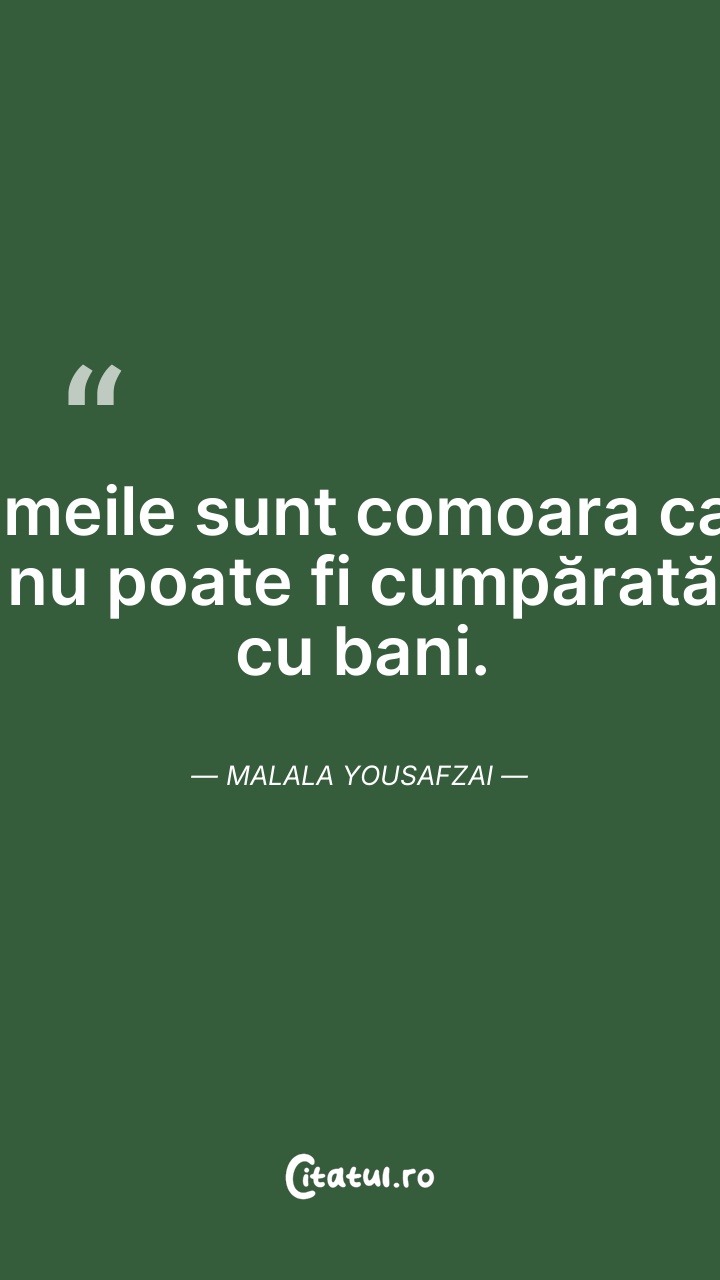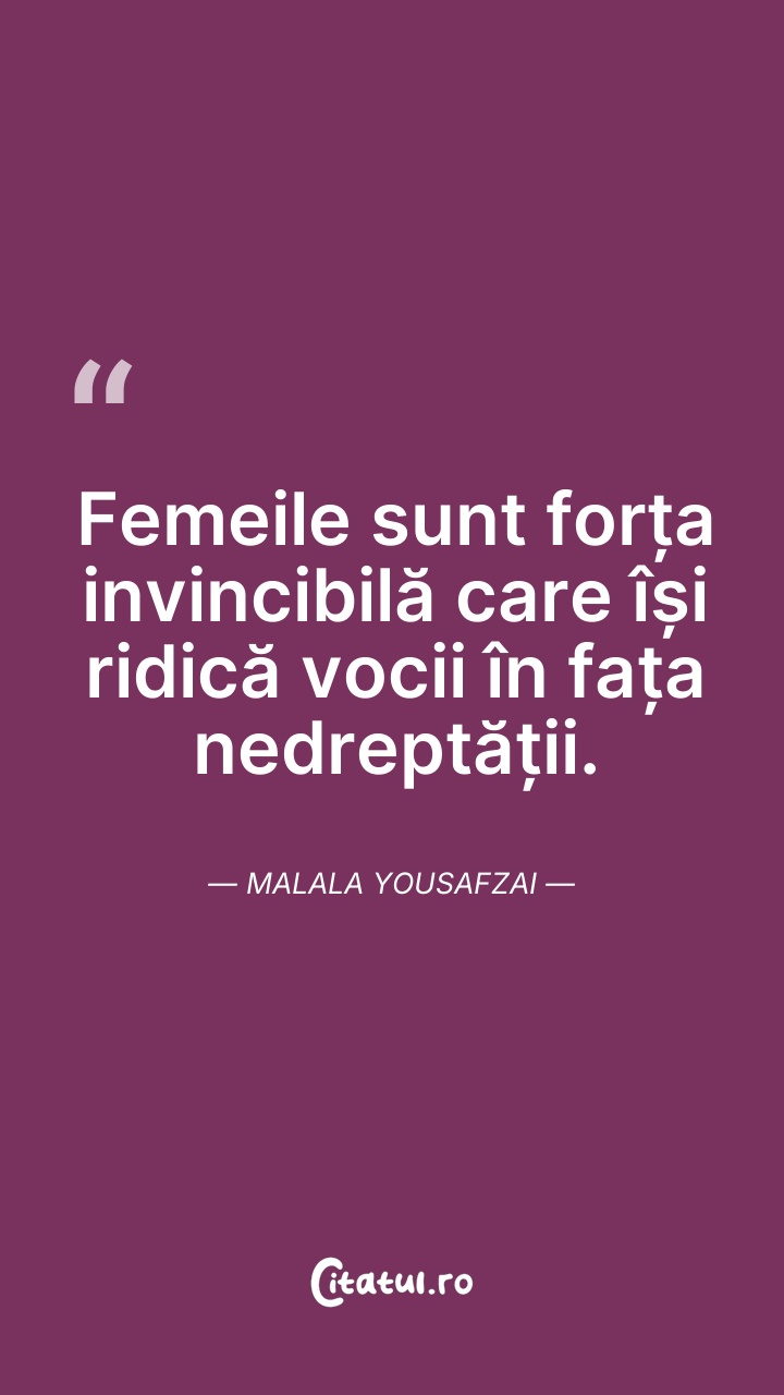 Malala Yousafzai este o activistă și producătoare de film pakistaneză, cunoscută pentru militantismul privind problemele societății islamice, în special discriminarea împotriva fetelor în educație.
