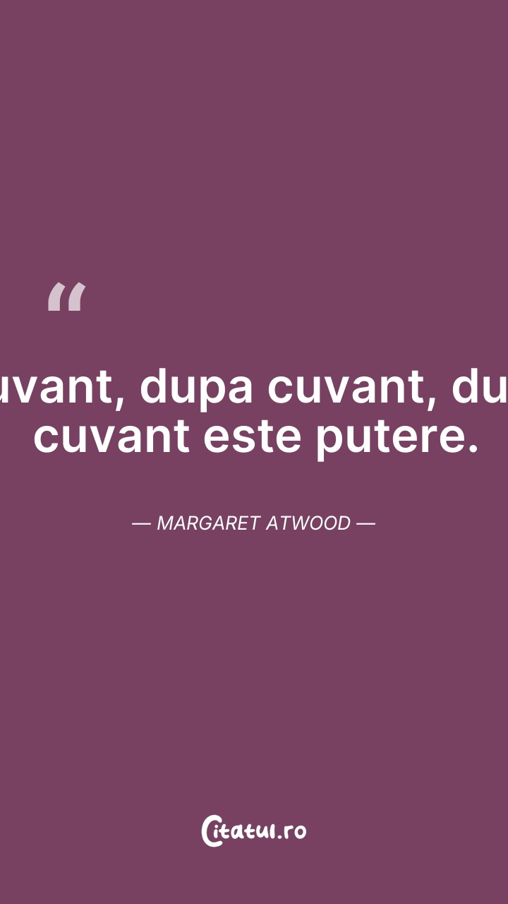 Cuvant, dupa cuvant, dupa cuvant este putere. ... Citește tot citatul >