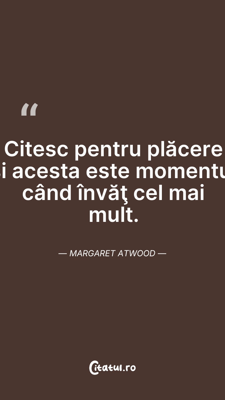 Citesc pentru plăcere şi acesta este momentul ... Citește tot citatul >