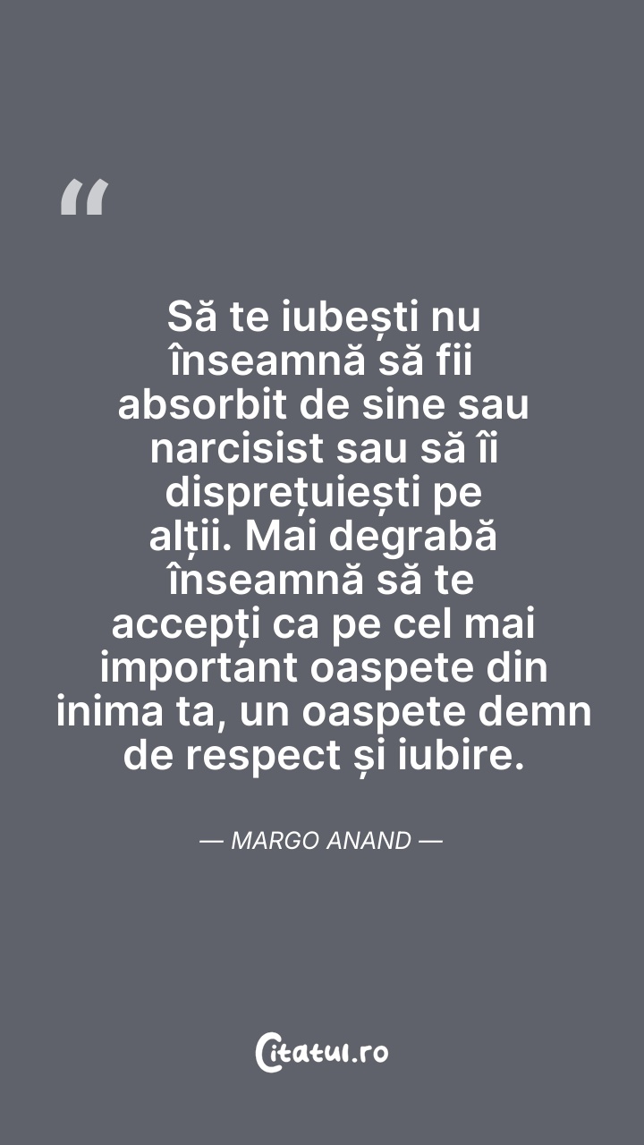 Să te iubești nu înseamnă să fii absorbit de ... Citește tot citatul >