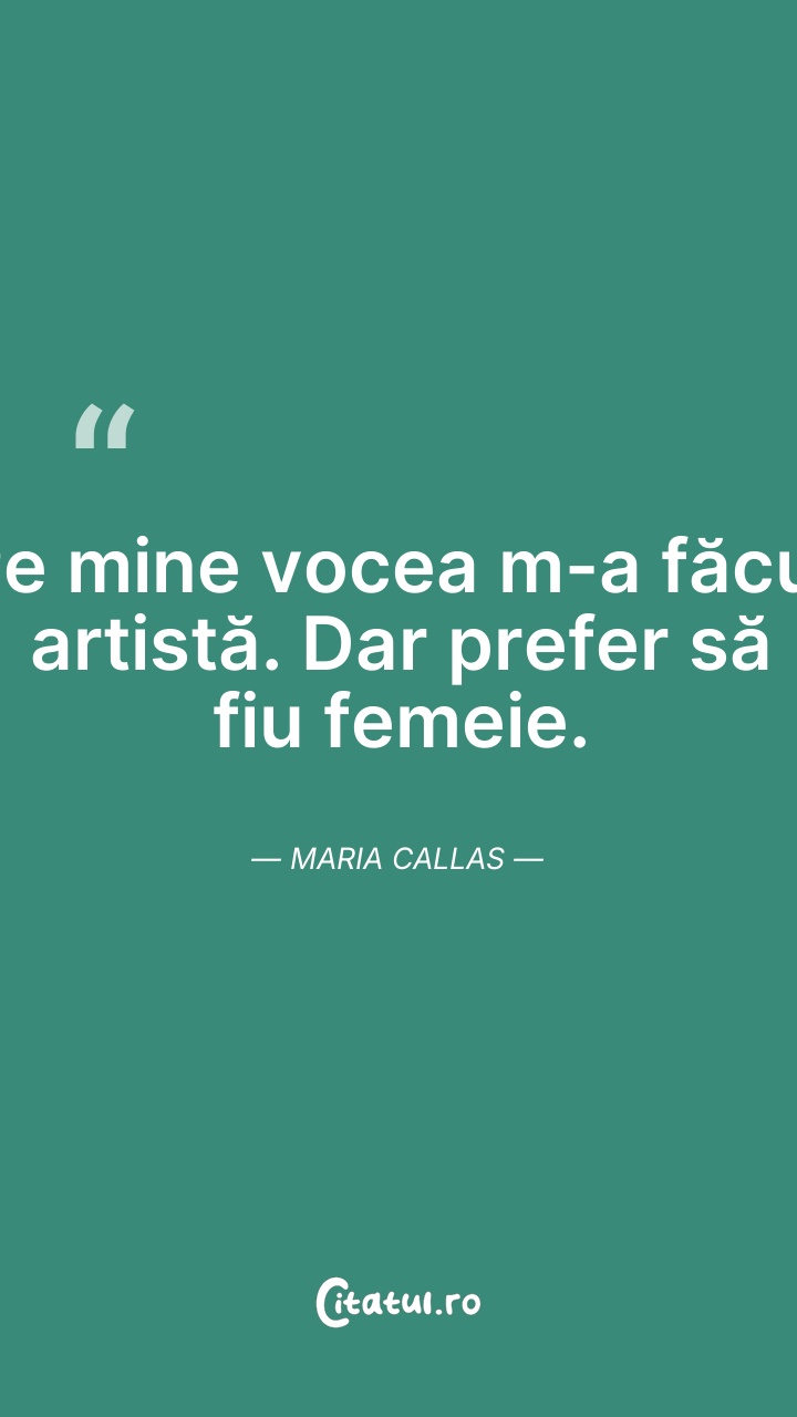 Maria Callas, născută Maria Anna Cecilia Sofia Kalogeropoulos, a fost o cântăreață de operă americană, de origine greacă. Supranumită „Divina” sau „Regina della lirica”, Callas este considerată una dintre cele mai mari cântărețe de operă din a doua jumătate a secolului al XX-lea.