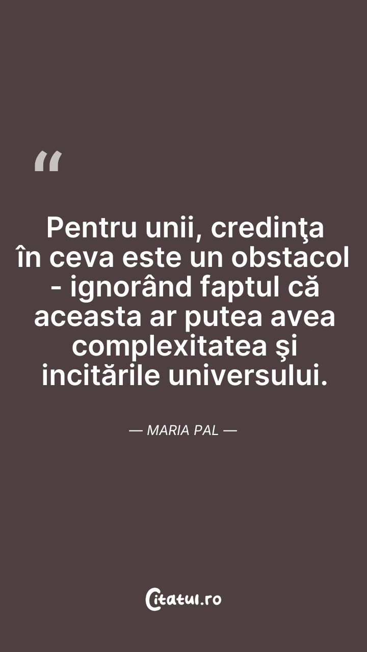 Pentru unii, credinţa în ceva este un obstaco ... Citește tot citatul >