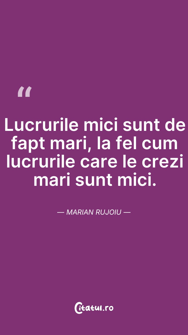 Lucrurile mici sunt de fapt mari, la fel cum ... Citește tot citatul >