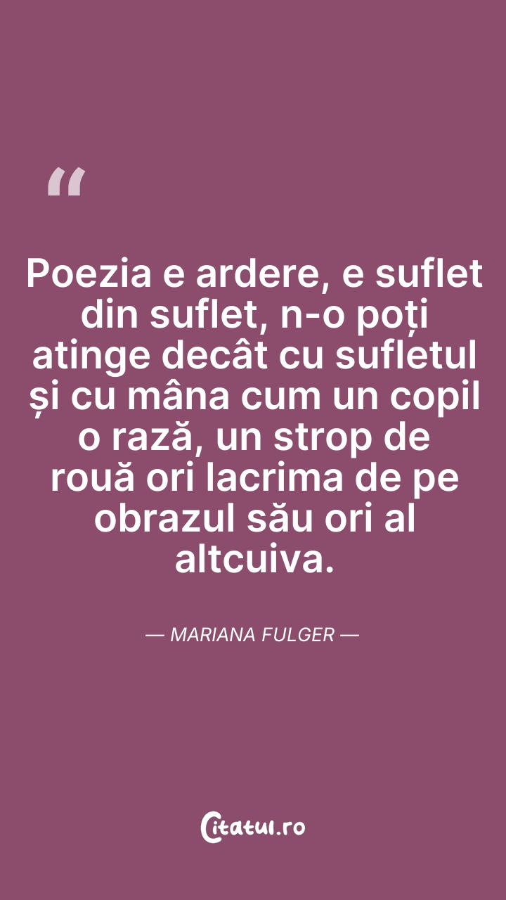 Poezia e ardere, e suflet din suflet, n-o poț ... Citește tot citatul >