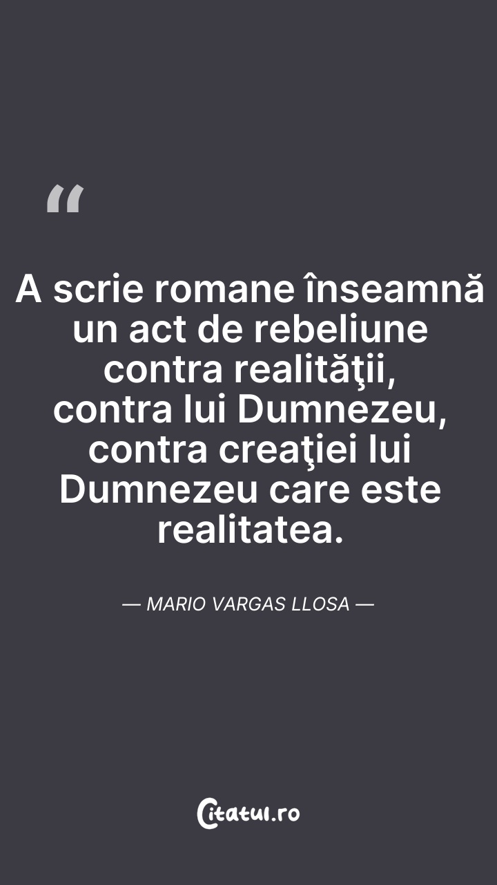 Mario Vargas Llosa a fost un scriitor din Peru. Este unul din cei mai importanți romancieri și eseiști născuți în America Latină. A obținut Premiul Nobel pentru Literatură (2010) pentru „cartografierea structurilor puterii și imaginile sale tranșante ale rezistenței, revoltei și înfrîngerii individului”.