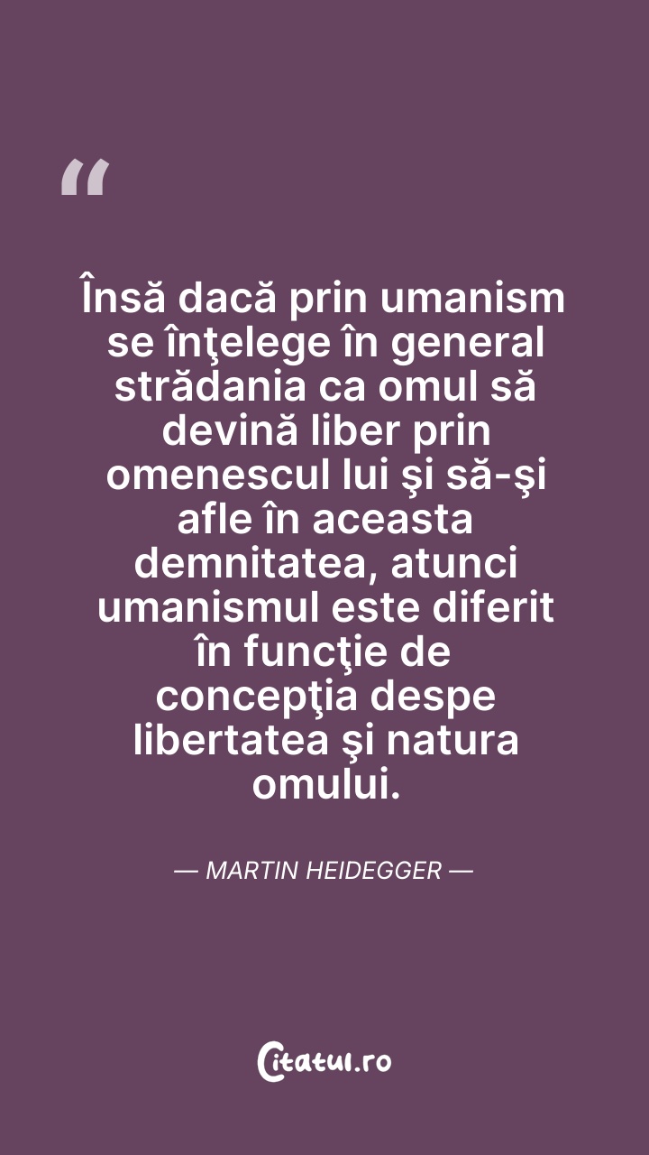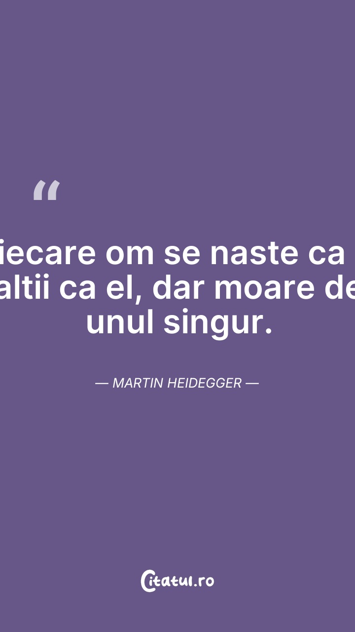 Martin Heidegger a fost unul din cei mai importanți filozofi germani din secolul al XX-lea. Lucrarea sa capitală, "Sein und Zeit", a contribuit la reconsiderarea fenomenologiei. Opera sa a exercitat o influență hotărâtoare asupra gândirii unei serii de filozofi ca Hans-Georg Gadamer, Maurice Merleau-Ponty, Jean-Paul Sartre, Emmanuel Levinas, Jacques Derrida și Hannah Arendt.
