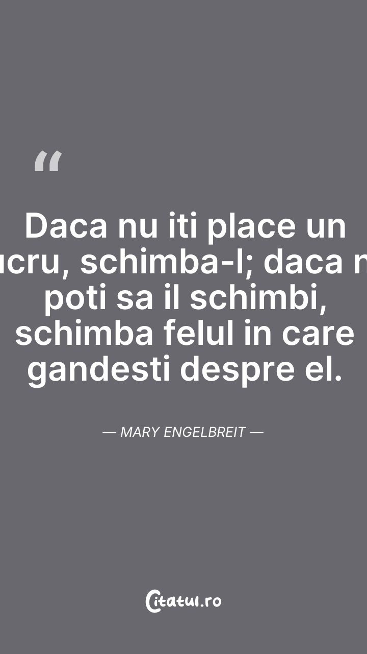 Daca nu iti place un lucru, schimba-l; daca n ... Citește tot citatul >