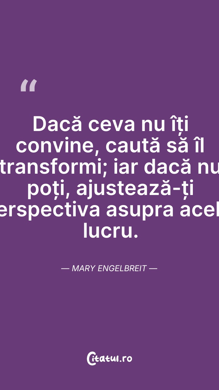 Dacă ceva nu îți convine, caută să îl transfo ... Citește tot citatul >
