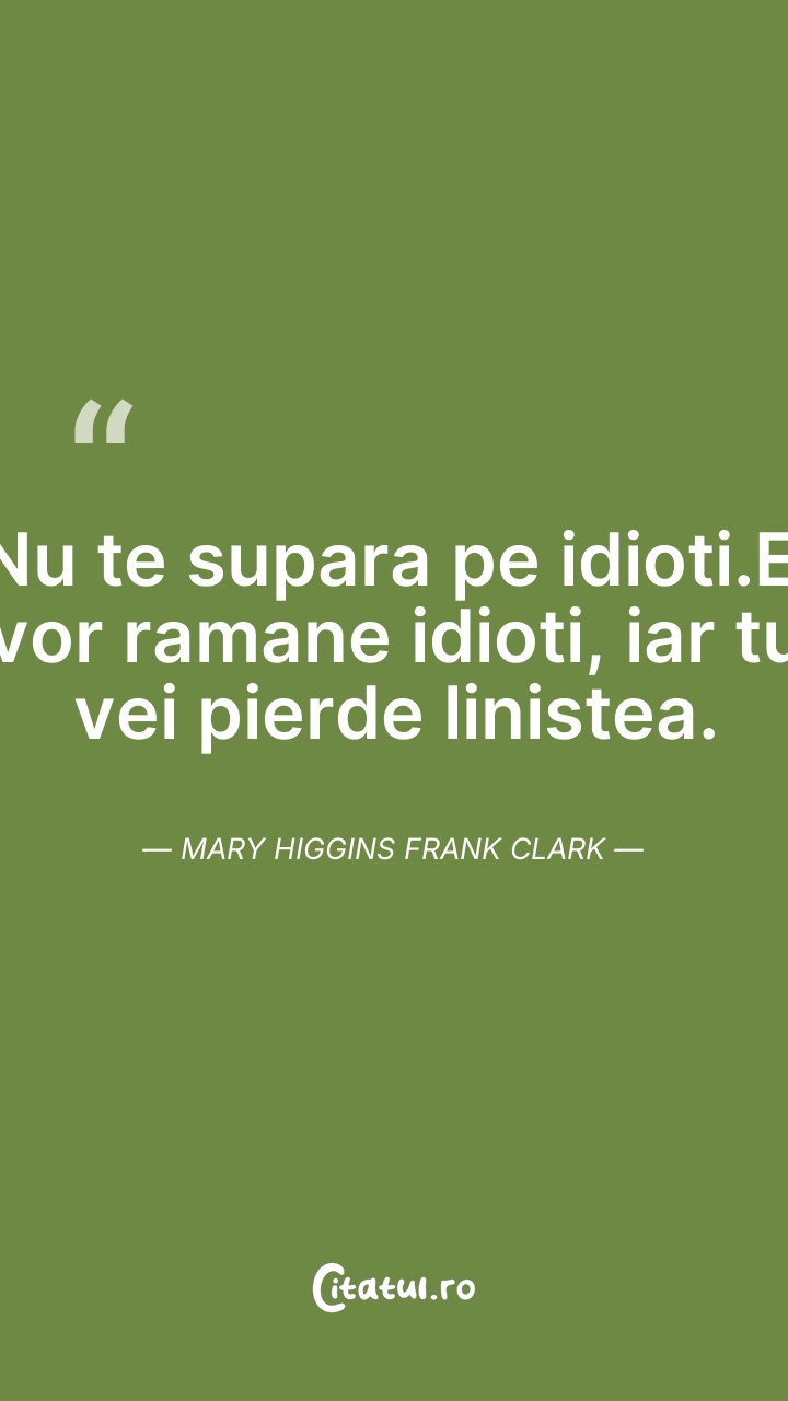 Nu te supara pe idioti.Ei vor ramane idioti, ... Citește tot citatul >