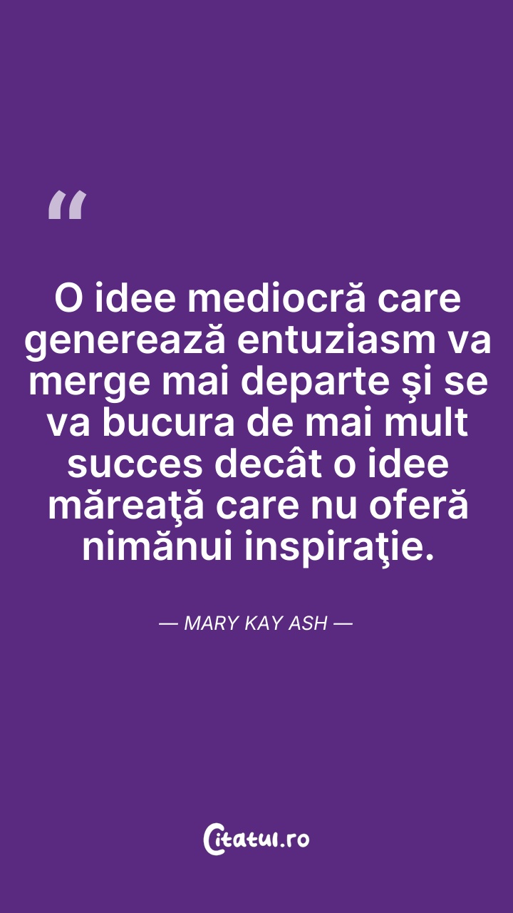O idee mediocră care generează entuziasm va m ... Citește tot citatul >