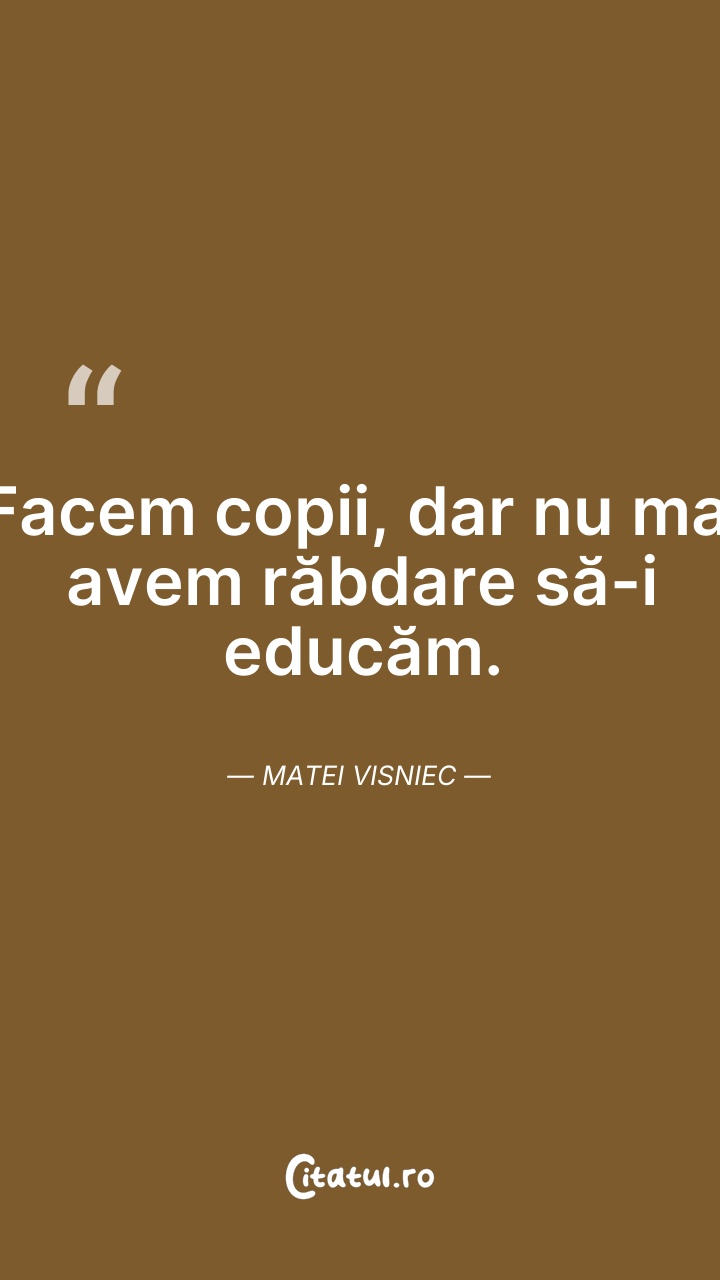 Facem copii, dar nu mai avem răbdare să-i edu ... Citește tot citatul >