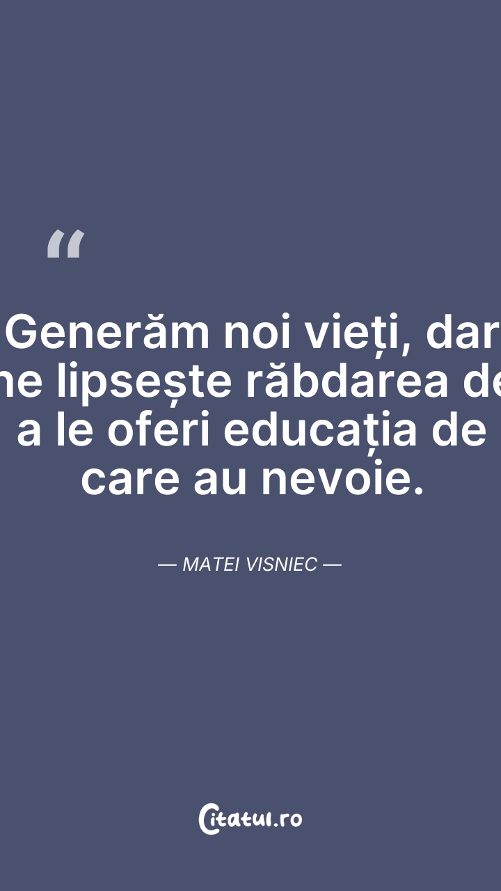 Generăm noi vieți, dar ne lipsește răbdarea d ... Citește tot citatul >