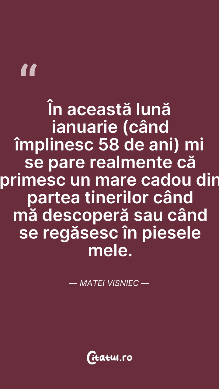 În această lună ianuarie (când împlinesc 58 d ... Citește tot citatul >
