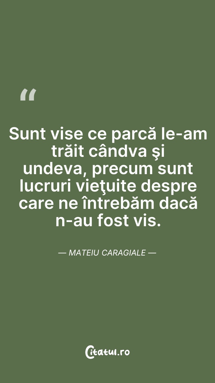 Sunt vise ce parcă le-am trăit cândva şi unde ... Citește tot citatul >