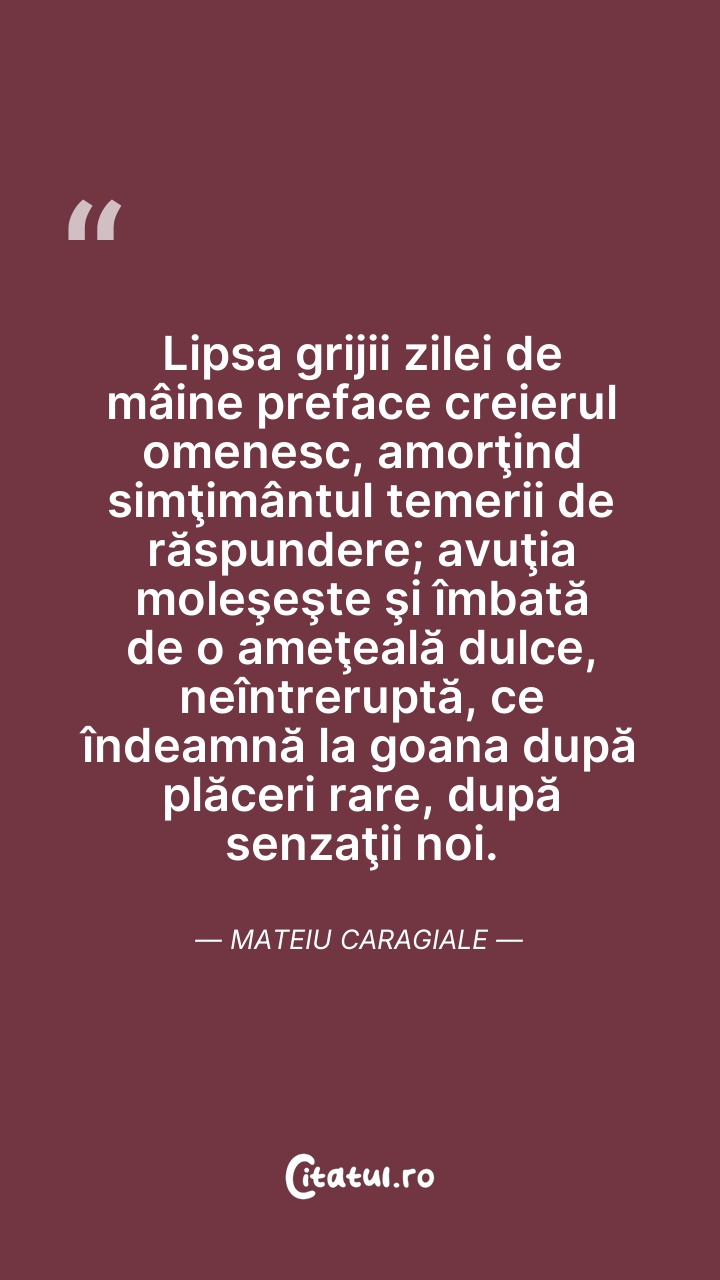 Lipsa grijii zilei de mâine preface creierul ... Citește tot citatul >