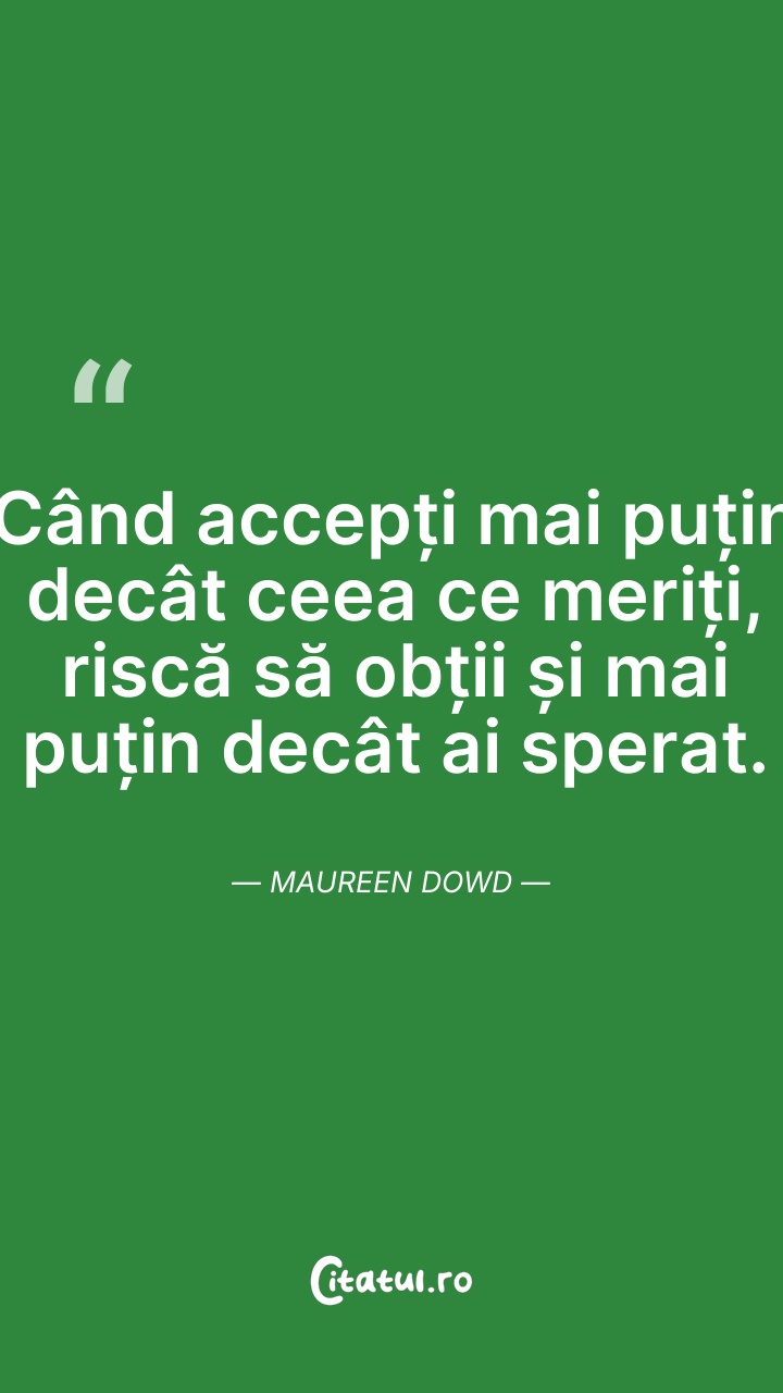 Când accepți mai puțin decât ceea ce meriți, ... Citește tot citatul >
