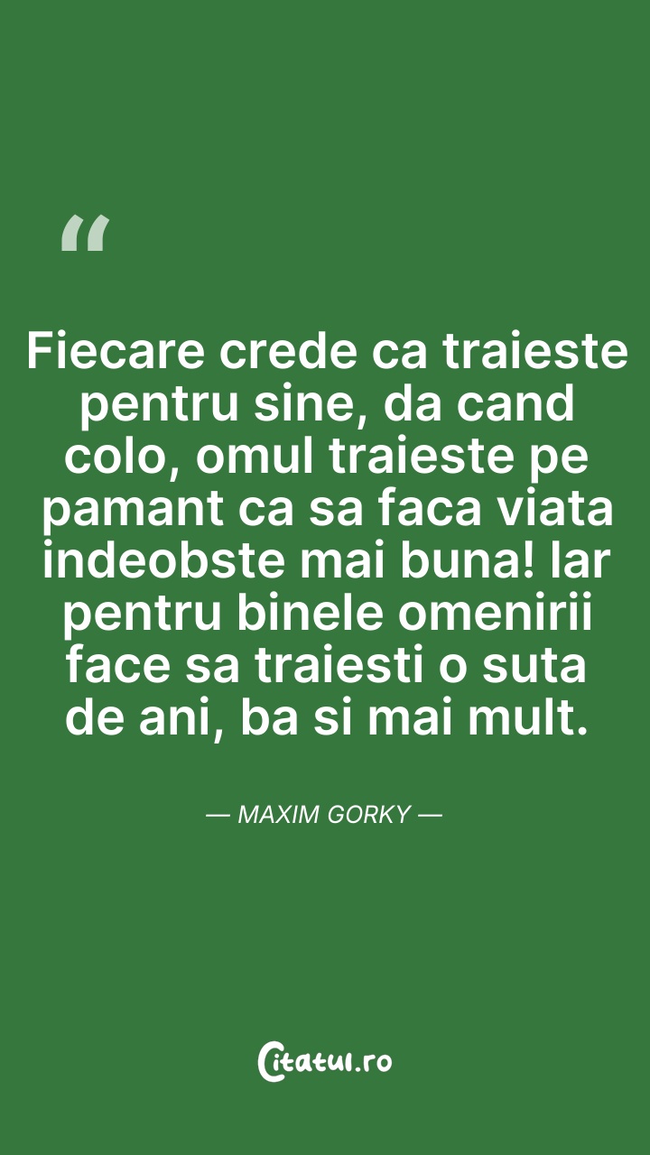 Fiecare crede ca traieste pentru sine, da can ... Citește tot citatul >